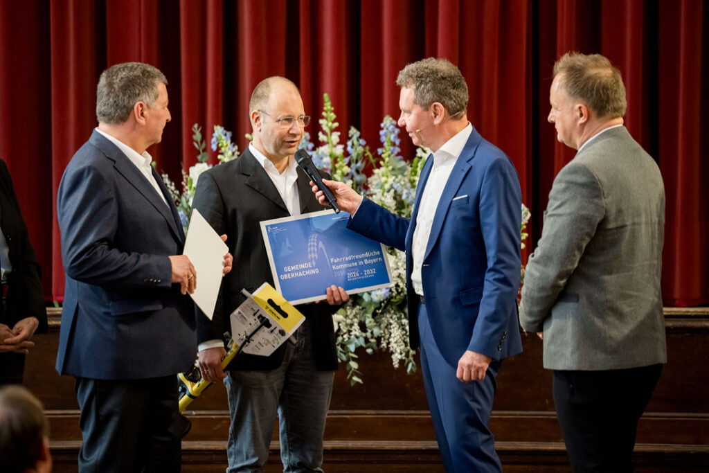 Ein echtes Highlight im AGFK-Jahr: Am 4. Februar 2026 wurden in der Münchner Scholastika erneut Kommunen ausgezeichnet, die sich mit Engagement, Ideen und Visionen für den Radverkehr einsetzen. Bayerns Verkehrsminister Christian Bernreiter und der AGFK-Vorsitzende Landrat Robert Niedergesäß zwölf Kommunen das Prädikat „Fahrradfreundliche Kommune in Bayern“. Damit tragen inzwischen diesen Titel.