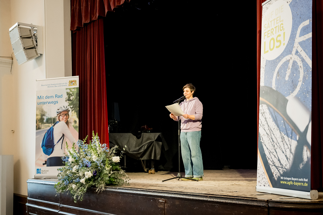 Besonders deutlich wurde beim Festakt: Gute Infrastruktur ist entscheidend, doch ebenso wichtig ist die Kommunikation. Ob Fotoshow der Bereisungen, persönliche Redebeiträge aus den Kommunen oder die poetische Liebeserklärung ans Rad von Poetry-Slam-Vizemeisterin Meike Harms. Radverkehr lebt davon, Menschen zu begeistern.