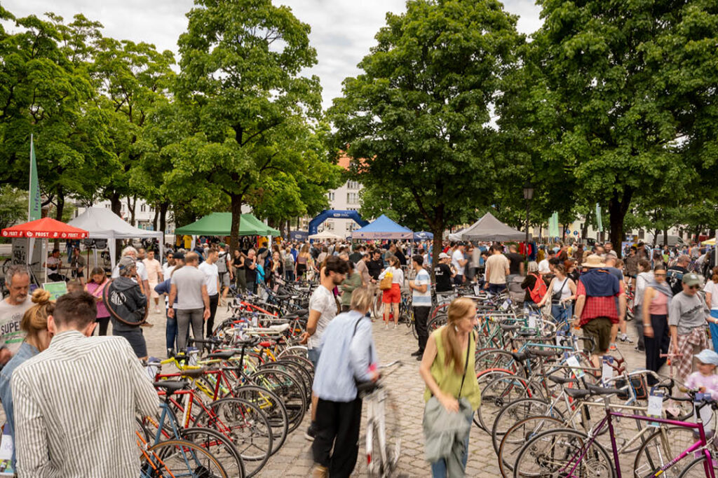Nach intensiver Konzeption und Planung setzten wir die Münchner Radl-Dult mit großem Radlflohmarkt bereits zum zweiten Mal um. Mit über 8.000 Besucher*innen und mehr als 200 Ständen und circa 2.800 angebotenen Fahrrädern wurde der Mariahilfplatz zu einem der größten Fahrradflohmärkte Deutschlands.