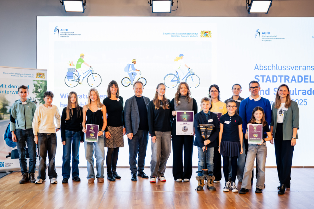 Das STADTRADELN, das Schulradeln und der von uns neu konzipierte Kreativ-Wettbewerb zeigen auch 2025, wie viel Begeisterung für klimafreundliche Mobilität in Bayern steckt. Bei der großen Abschlussveranstaltung im Literaturhaus München wurden die Gewinnerinnen und Gewinner feierlich ausgezeichnet und die Rekordergebnisse machen deutlich: Radfahren wird immer mehr zum Alltagsverkehrsmittel.